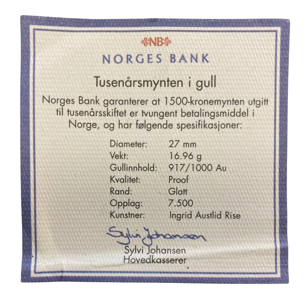 16.97g .917Au (1/2oz) (SPOT + 2%)Tusenårsmynten i skrin fra Samlerhuse