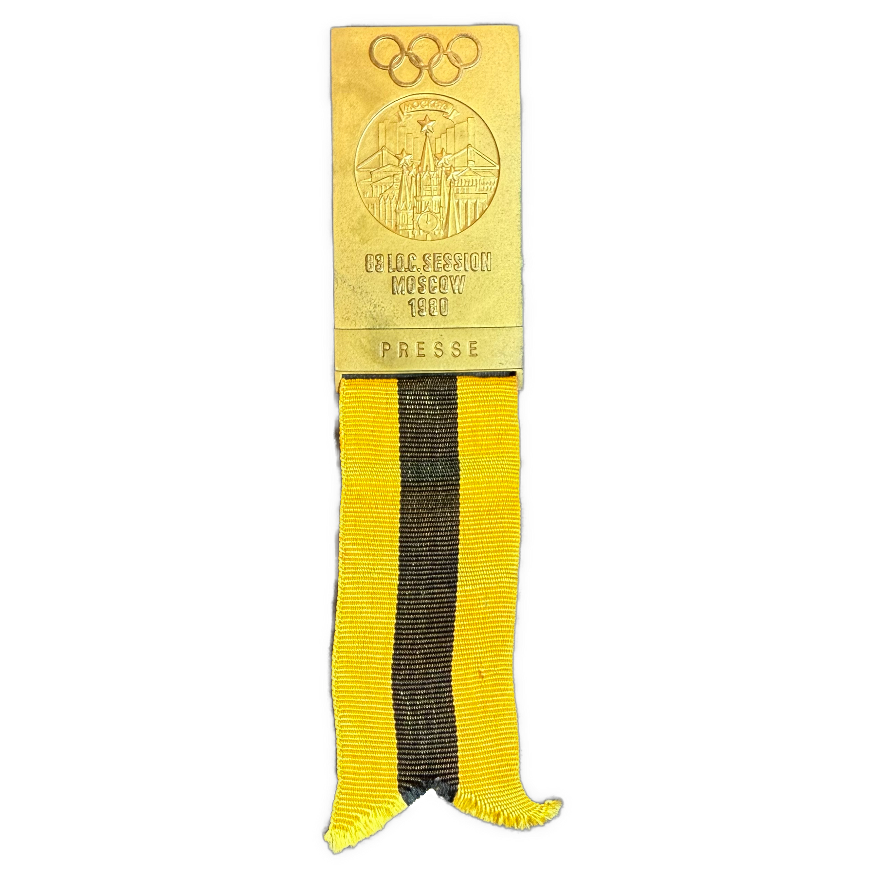 Sjeldent pressemerke fra den 83. IOC Session i Moskva i 1980, utstedt til akkreditert presse i forbindelse med forberedelsene til Sommer-OL 1980. Medaljen er i bronse med detaljert motiv av Kreml og de olympiske ringer, og teksten “83 I.O.C. SESSION MOSCOW 1980 – PRESSE”.