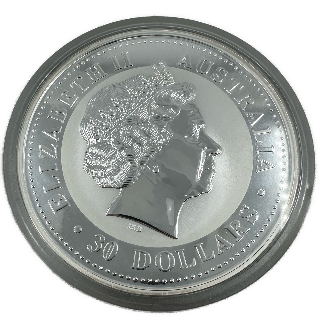 1KG .999Ag $30 Kookaburra Australia 2000 i Skrin