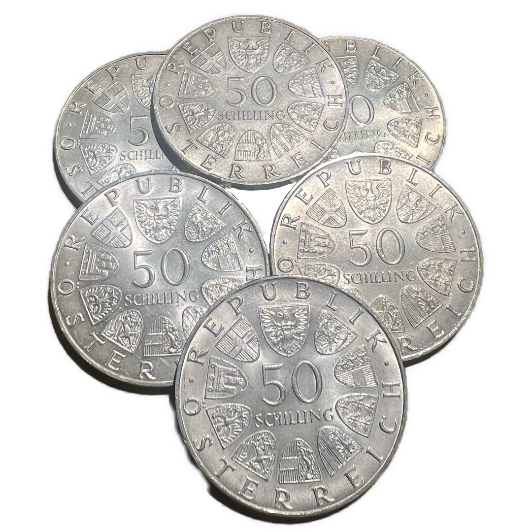 120g .900Ag (SPOT) 6stk Minnemynter 50 Schilling Østerrike